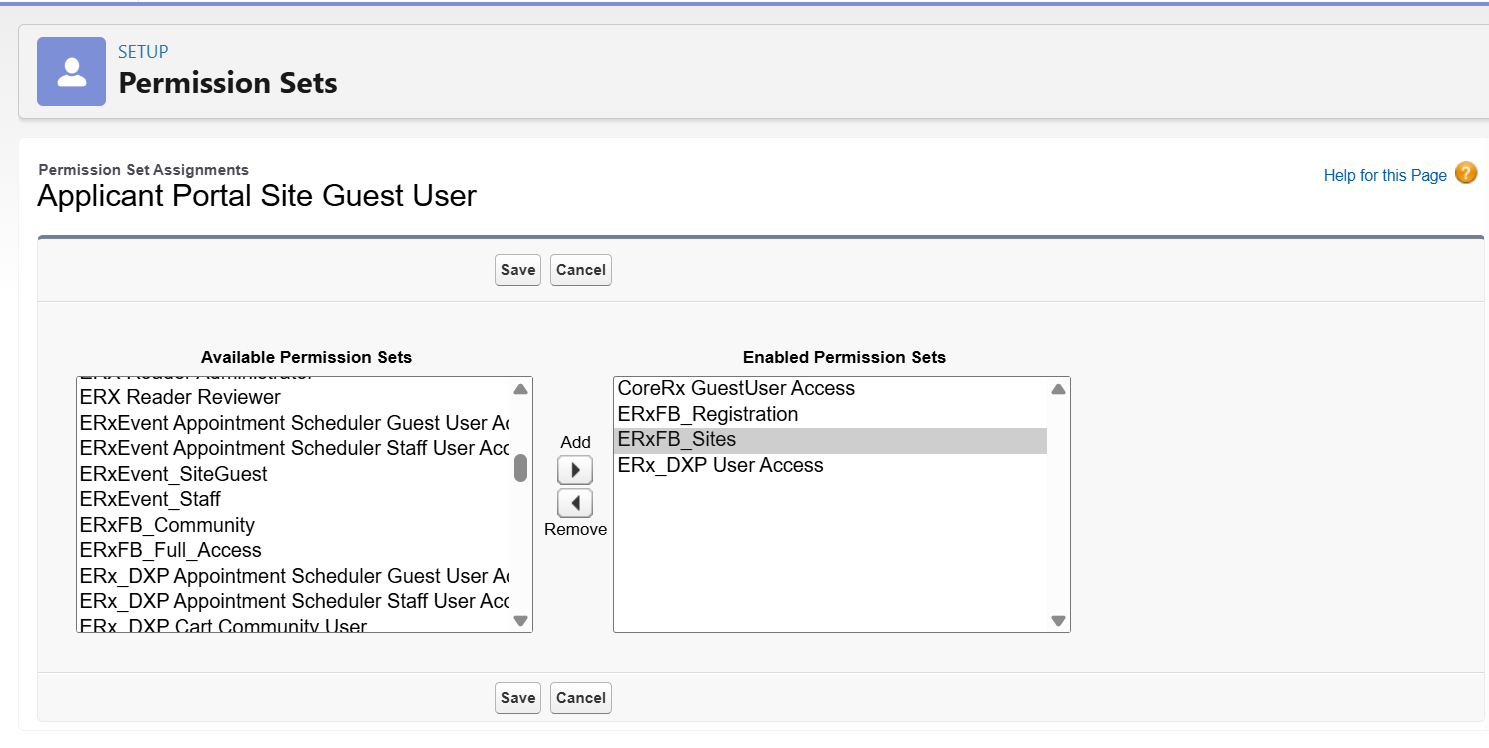 Erx_FB_SitesPermission Set to the DXP Community Site Guest User.
