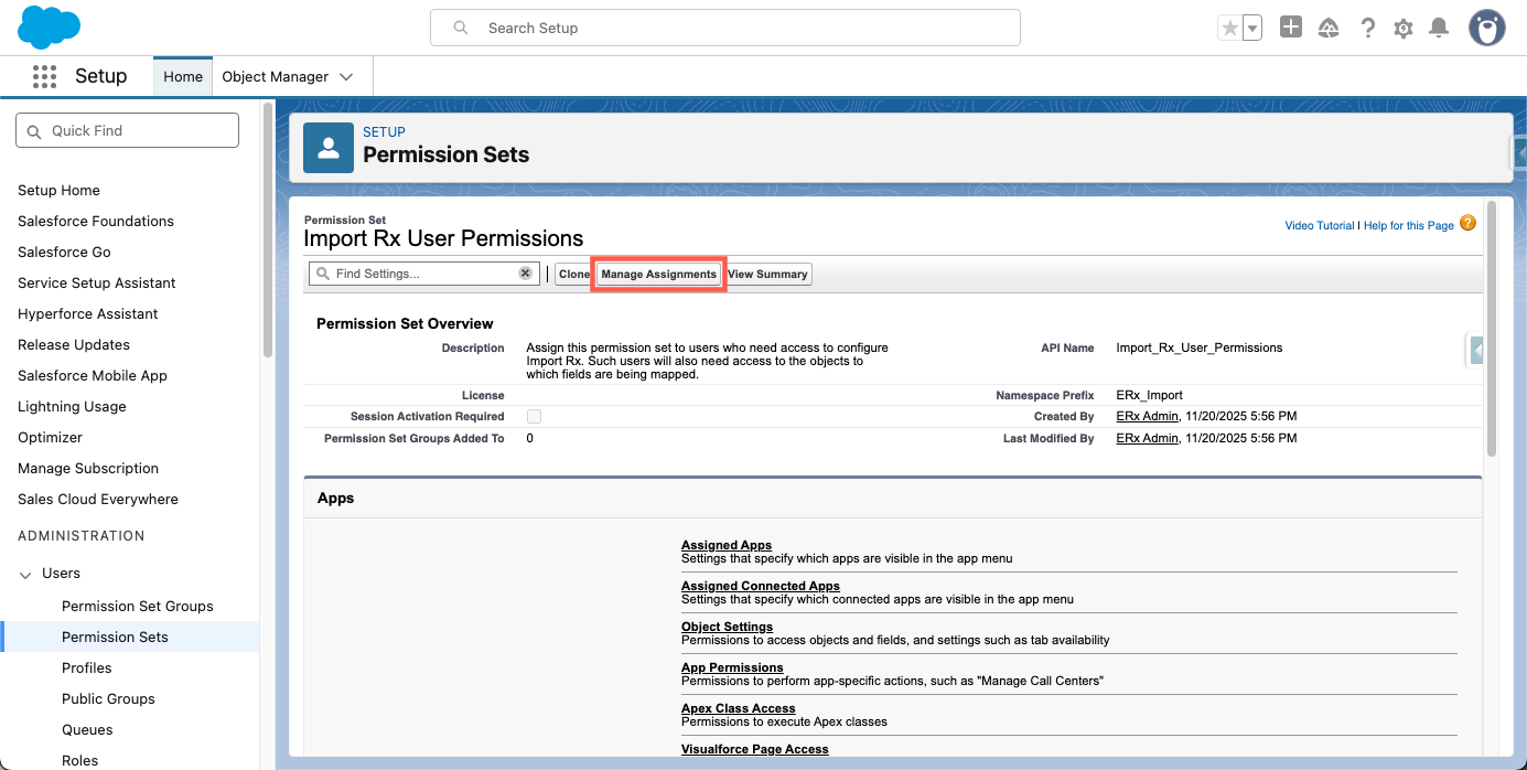 If you are using custom permission sets, please either clone the included Import Rx Permission Set, or ensure access is granted to all new fields and objects included in Import Rx. Refer to the table on this page.