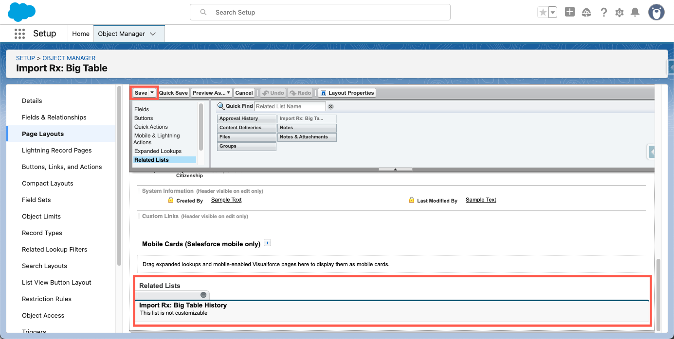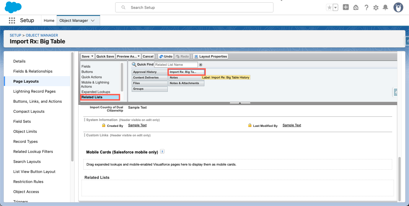 Related Lists section and drag the ‘Import Rx: Big Tables’