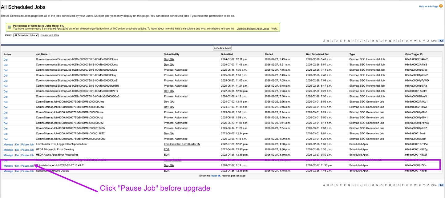 ScheduleBatchImportProcessjobs are scheduled to run during the upgrade → Pause All Jobs.